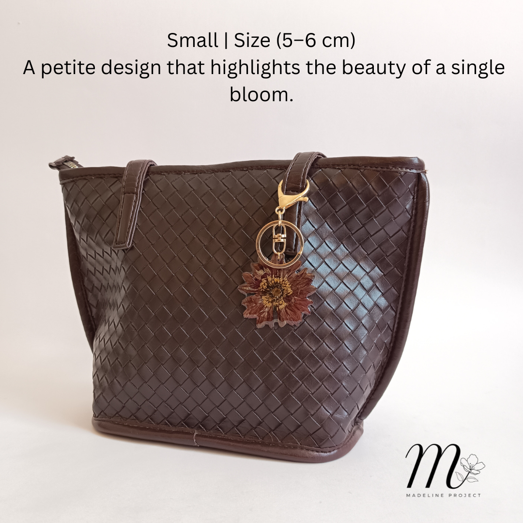 With a flower size of approximately 5 cm, this keychain brings a bold yet refined touch — ideal as a personal charm or a heartfelt gift.
