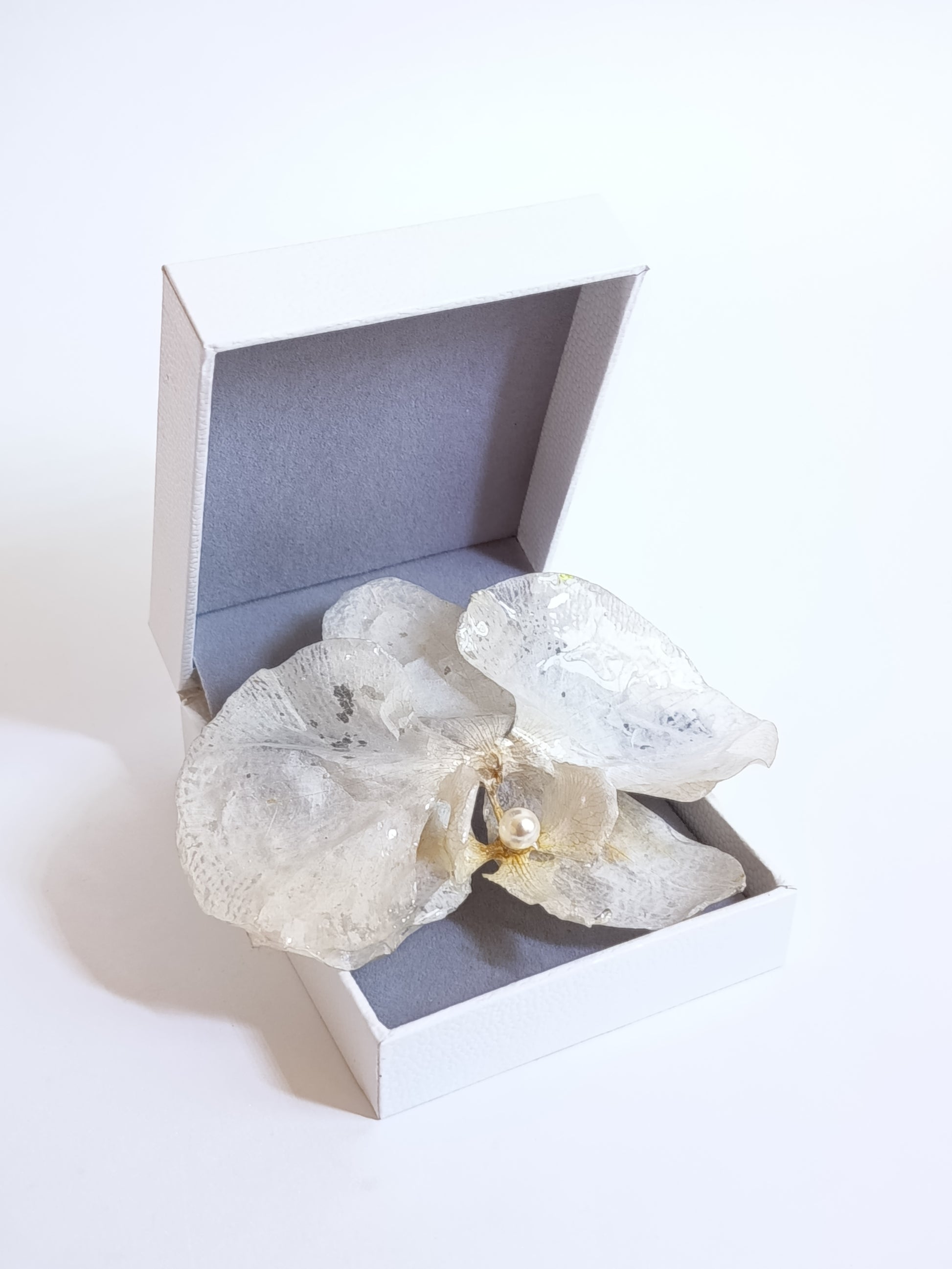 White Orchid Hair Clip made from Preserved Orchid with resin and combine with hair clip.